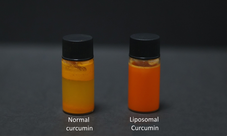 Kurkumin liposomal membentuk sistem yang homogen dan stabil dalam air.