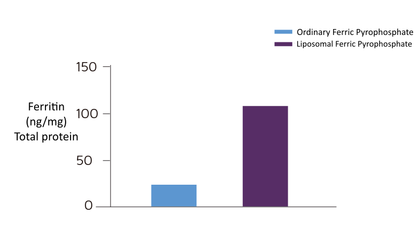 Dibandingkan dengan senyawa besi biasa, penyerapan relatif besi melalui liposom meningkat sekitar 4,3 kali lipat.